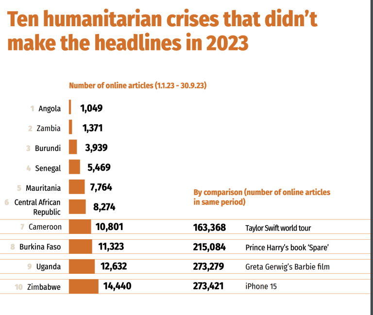 En 2023, il y avait 273 279 articles en ligne dans le monde sur le nouveau film Barbie, mais seulement 1 049 articles sur la crise humanitaire en Angola. Pourtant, plus de sept millions de personnes ont été touchées par les sécheresses, les inondations et la faim dans ce pays d’Afrique australe.